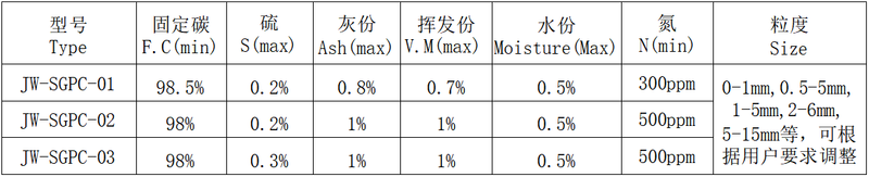 该产品煅烧温度在1700-2700℃范围,具有高碳、微氮、高溶解速度、高吸收率、硫含量适中的特性, 广泛用作铸铁的增碳,具有较高性价比。